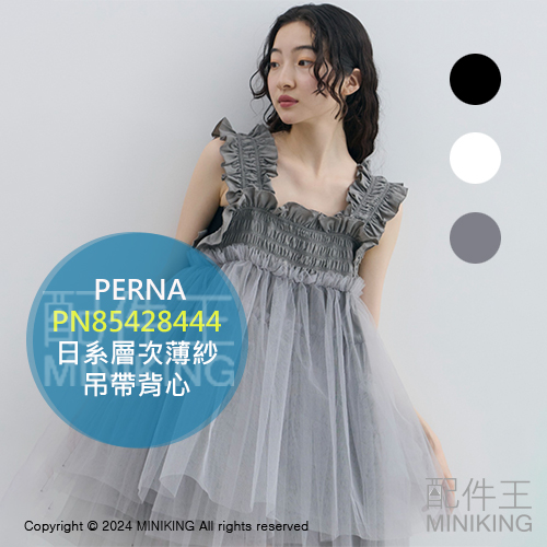 日本代購 PERNA 層次薄紗吊帶背心 上衣 連身短裙 迷你裙 荷葉邊 褶皺 網紗 日系 日單